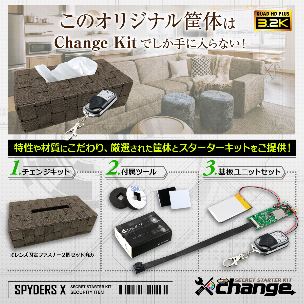 ★市販のティッシュボックスがそのまま使える!しかも簡単にカメラになる ★フルハイを越えた美麗映像の超高解像度3.2K基板ユニットチェンジキット |