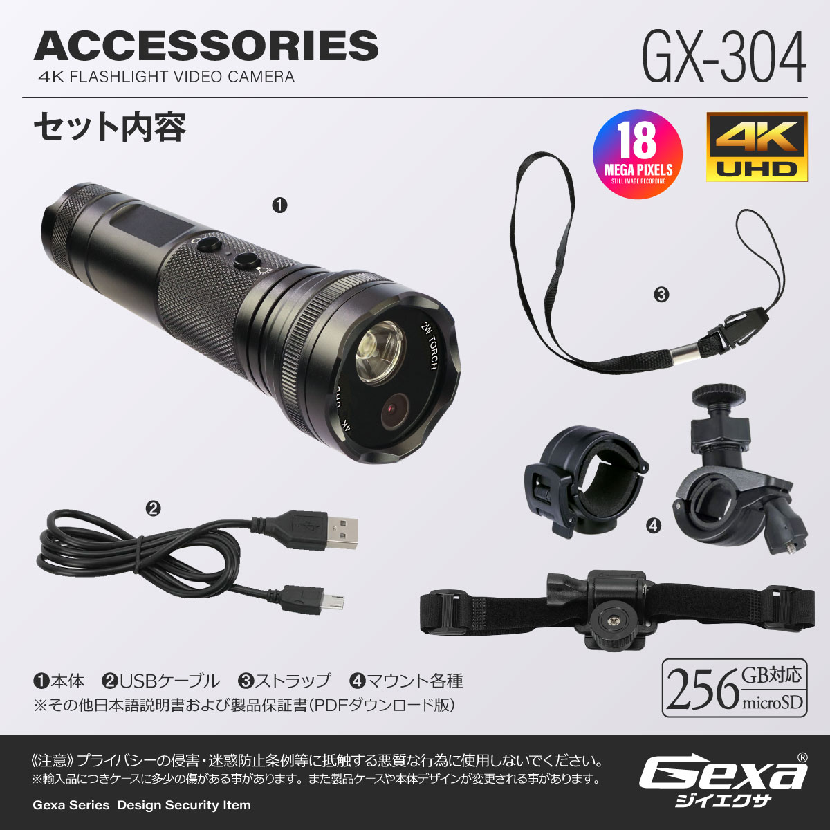 ・製品ケースや本体デザイン、ロゴ等が変更される事があります。 ・輸入品につき、製品箱等にキズ/汚れがある場合がございます。 ・バッテリー稼働時間はあくまでも目安であり稼働時間を保証するものではありません。 ・プライバシーの侵害/迷惑防止条例等に抵触する悪質な行為に使用しないで下さい。 ・本製品は専用ケーブルを使用している為、他のケーブルでは接続はできません。 ・ご使用中本体が発熱し、熱くなることがありますが異常ではありません。 |