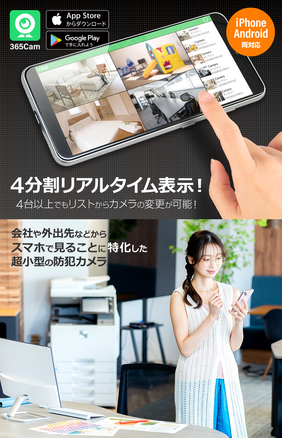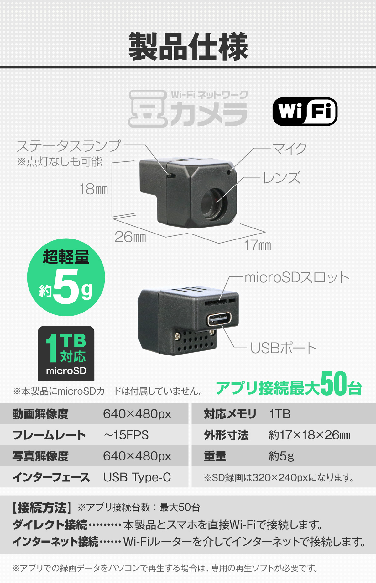 ★指先サイズの超極小「豆カメラ」!小さくてもネットワーク接続に対応!★ ★外出先からでもWi-Fi接続でネットワーク越しにモニタリングできる!★ ★便利なスマホアプリで最大50台までのカメラ接続して一括管理!★ ★スマホの1画面に4台までのカメラ映像を同時に表示可能!★ |