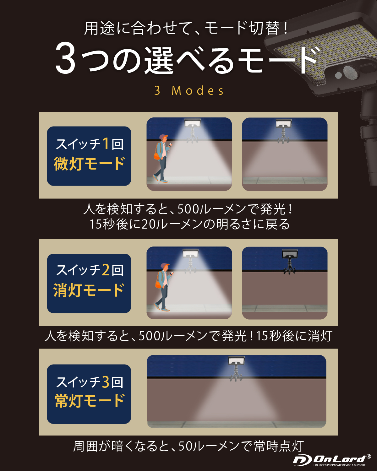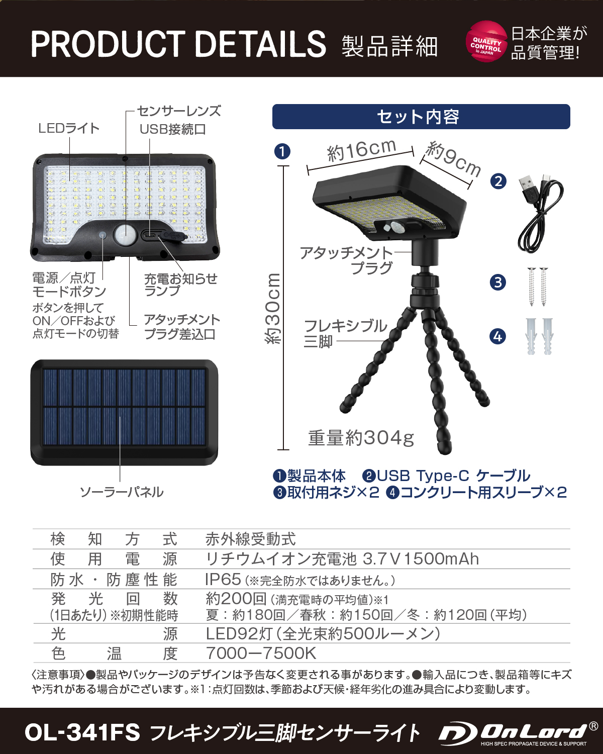 ・完全防水ではありません。雨の中で発光面を上に向けて設置はできません。 ・製品やパッケージのデザインは予告なく変更される事があります。 |