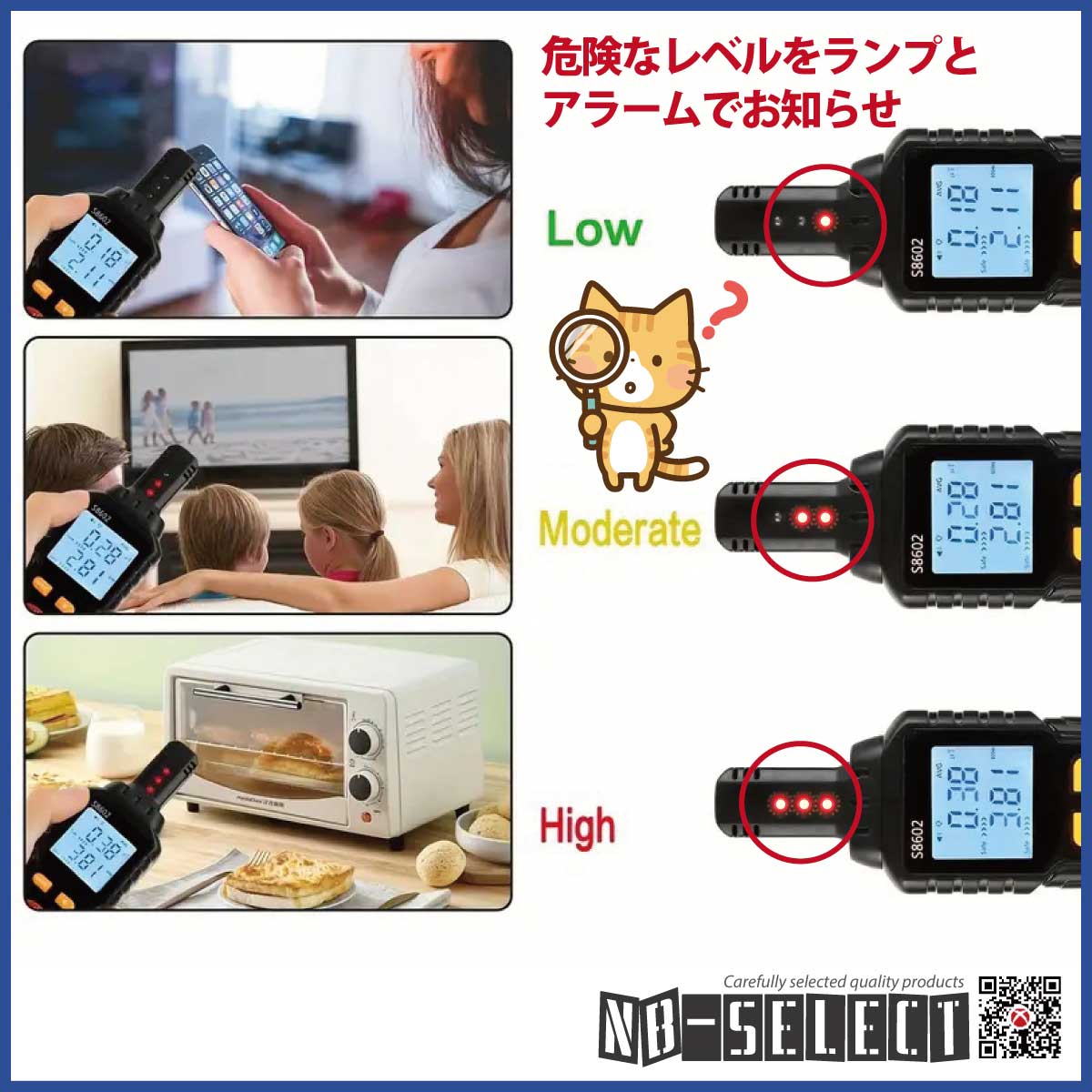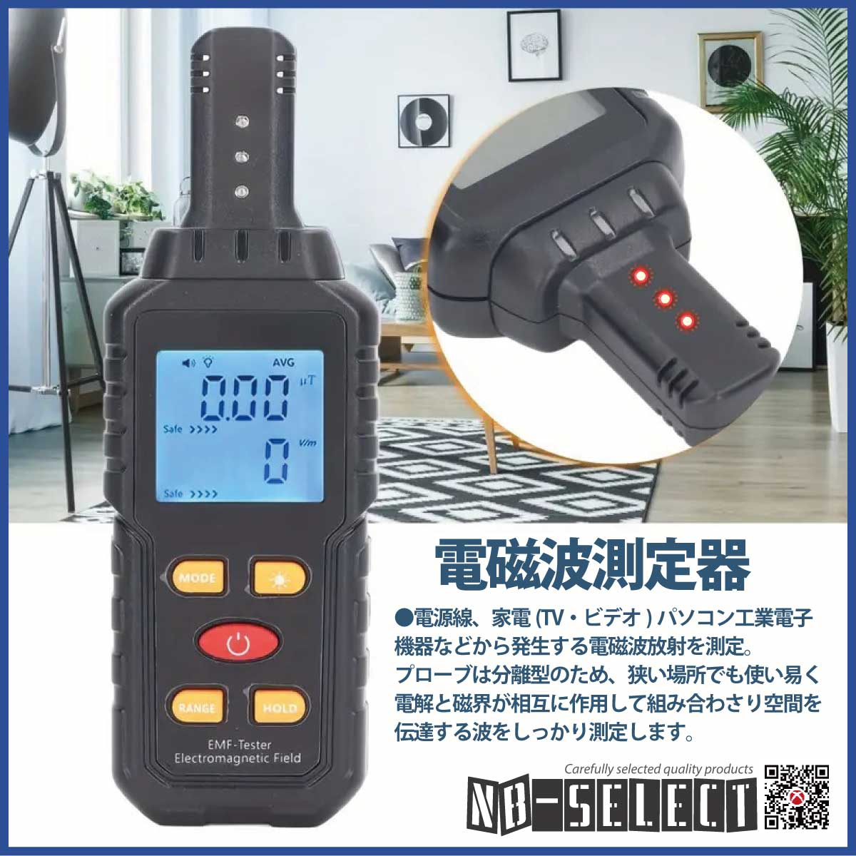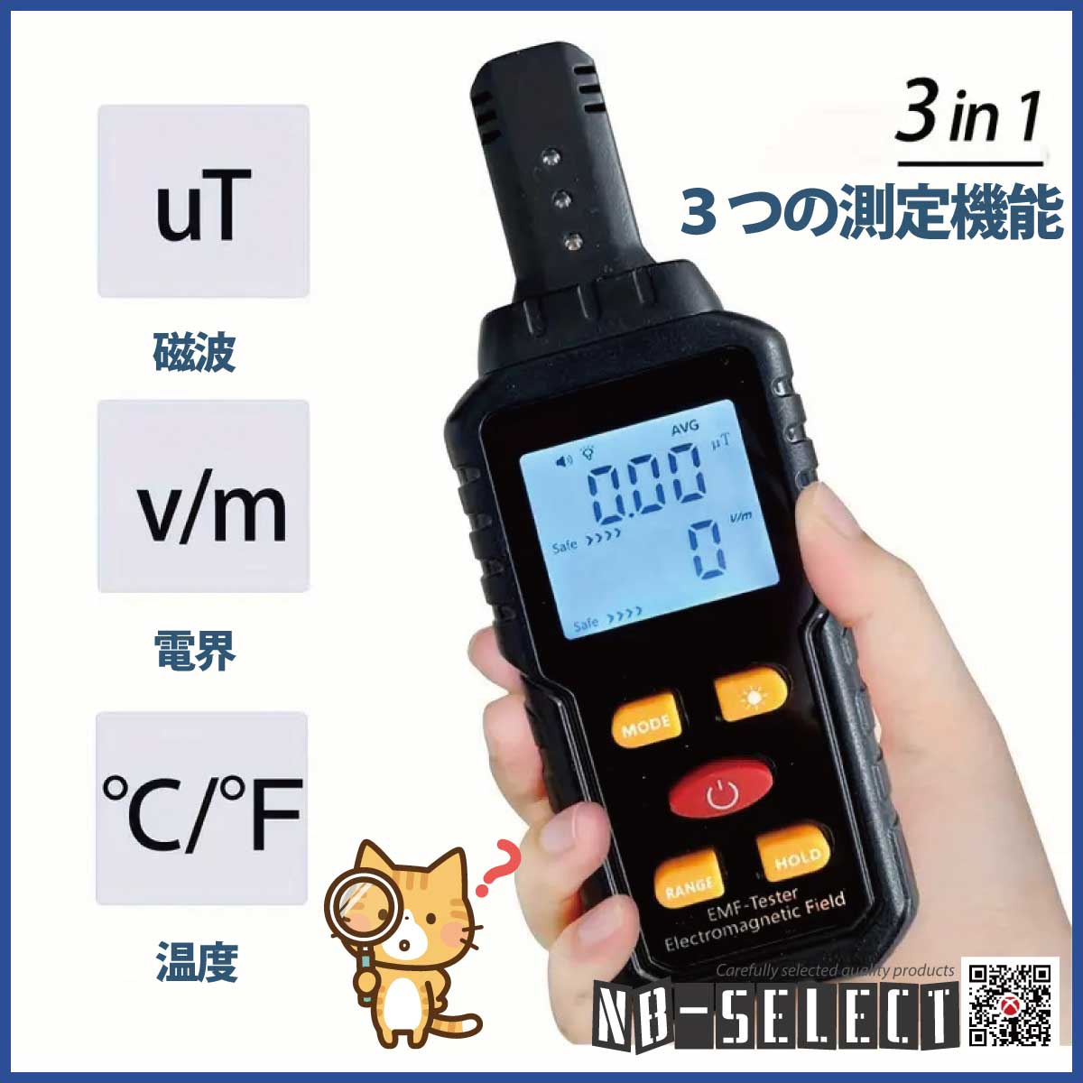 【NB-SELECT-61008】電磁場測定器、家庭用EMF検出器アラーム付(電場、磁場、温度の3つの機能を同時に検出できる電磁波測定器)警報機能付き!