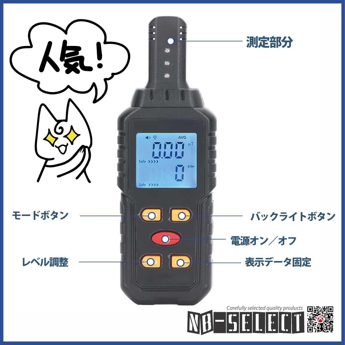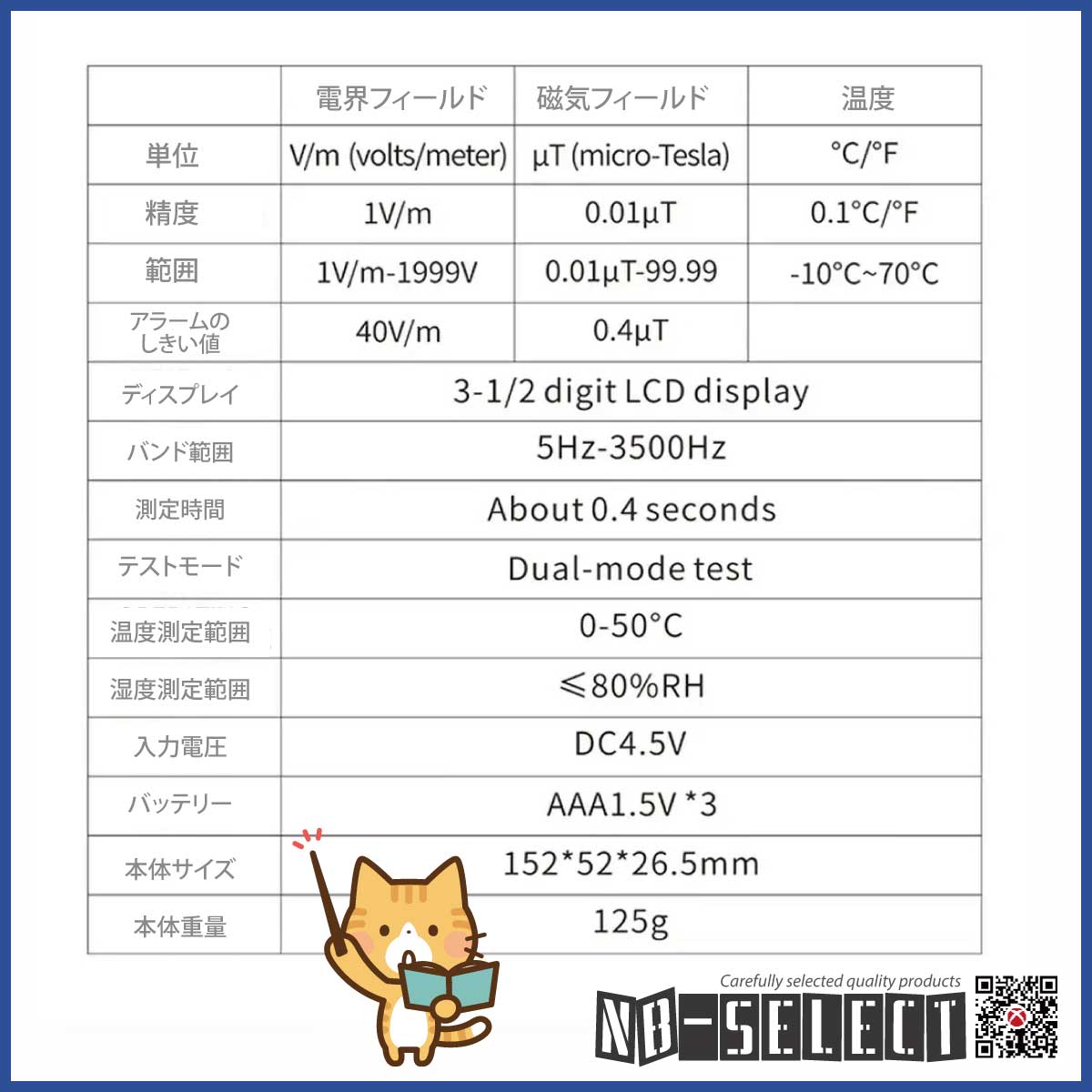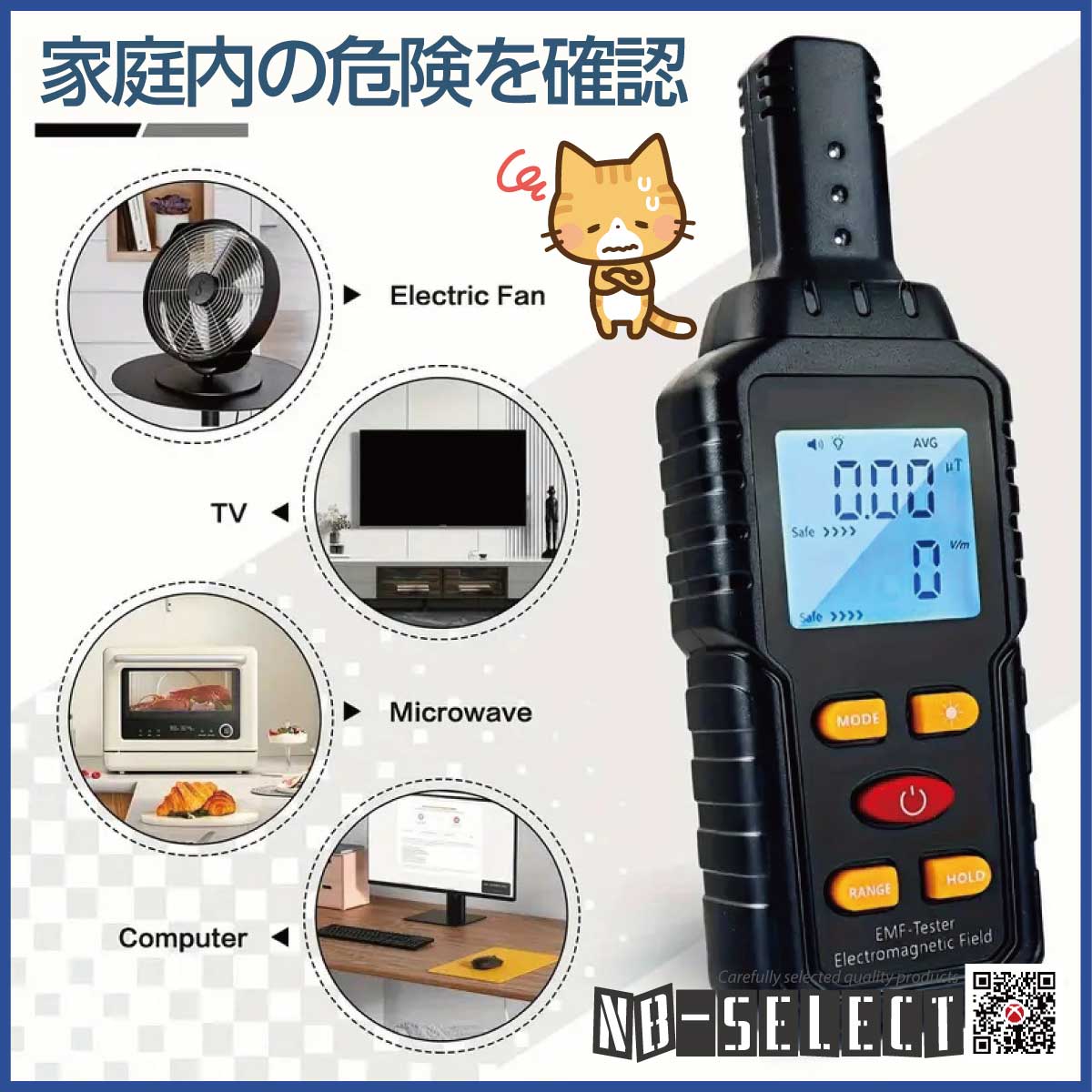 【NB-SELECT-61008】電磁場測定器、家庭用EMF検出器アラーム付(電場、磁場、温度の3つの機能を同時に検出できる電磁波測定器)警報機能付き!