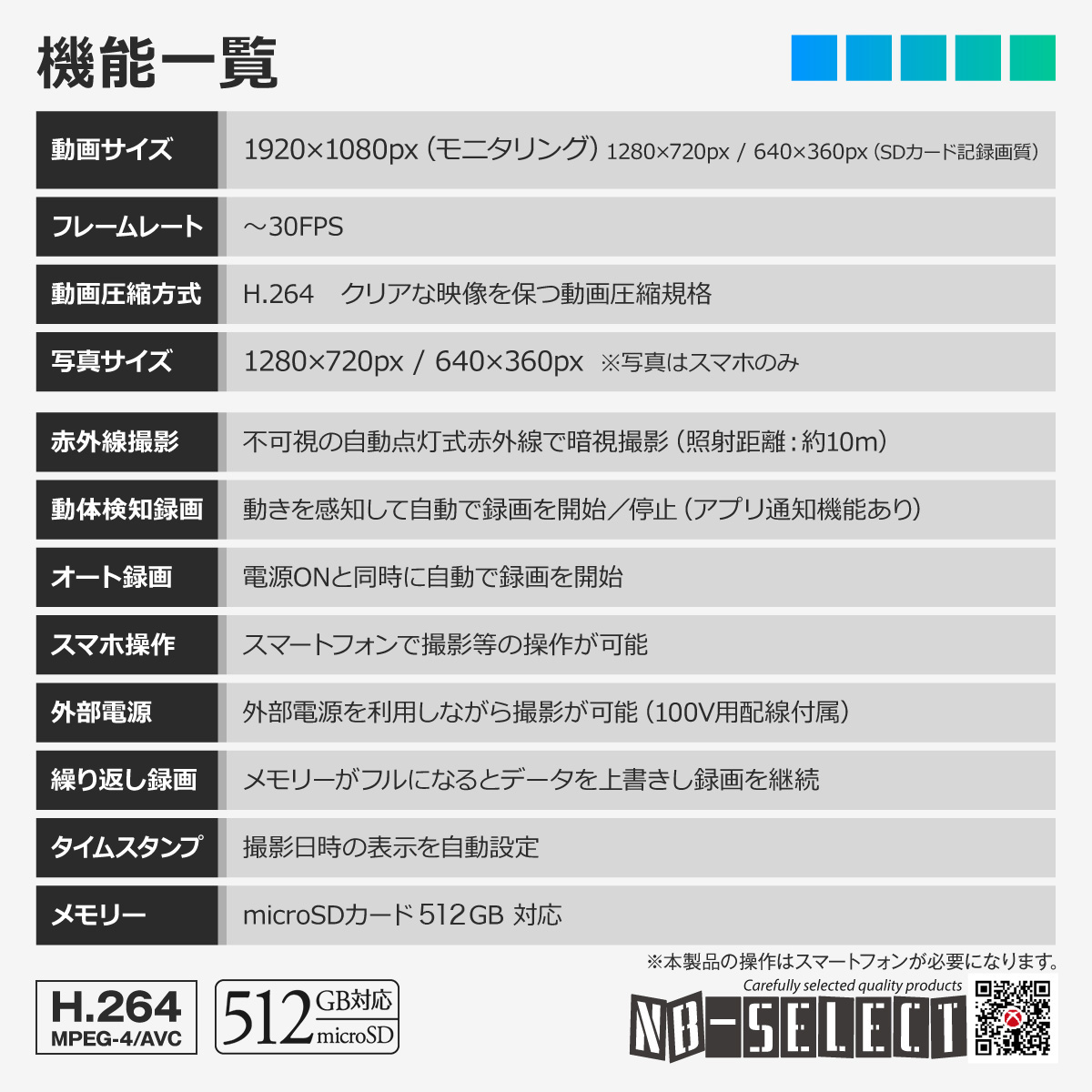 動体検知機能・赤外線機能・その他専用アプリ |
