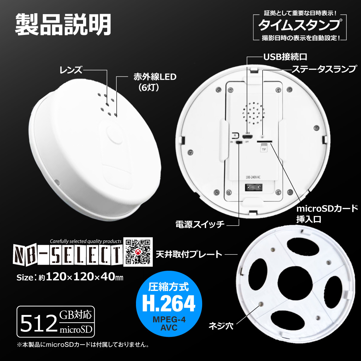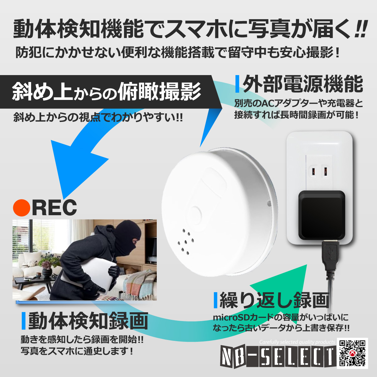 ■<オリジナルカスタマイズ>メモリー最大512GB対応!初の100V電源、常時録画対応!火災報知器型のスパイカメラ!アプリもいいね、動体検知が反応すると写真で通知!録画状況はアプリからいつでも再生可能! |