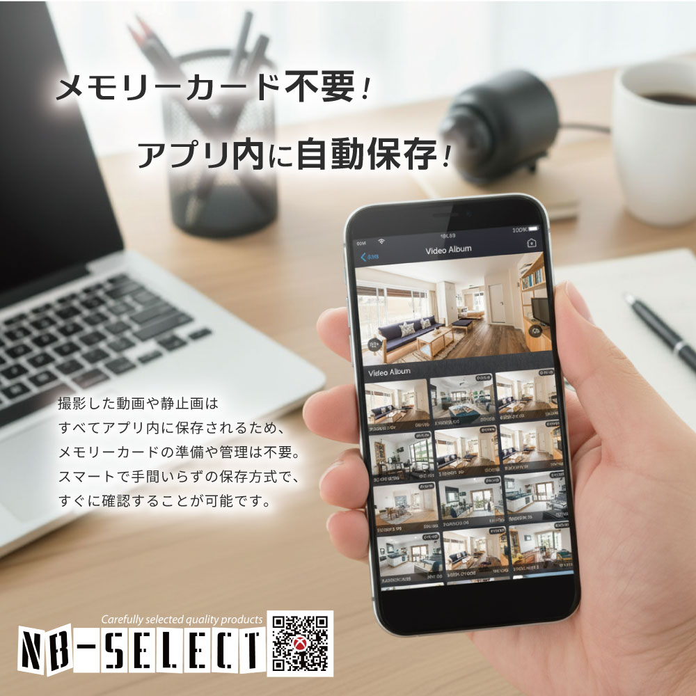 ■スマホで遠隔操作ができるミニWi-Fiカメラになります。 アプリ内に撮影データが保存され、その場ですぐ確認することができます。 メモリーカード不要!暗視モード搭載!写真の撮影もOK! |