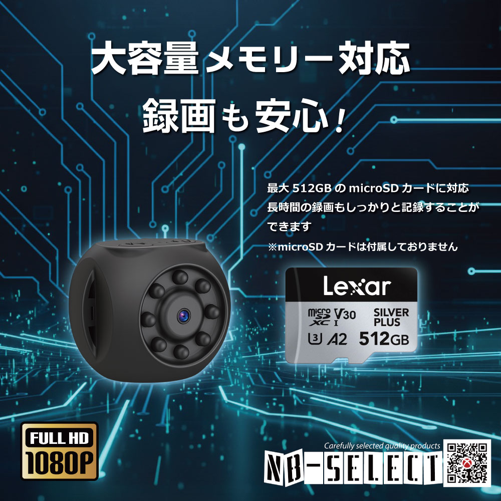 ワイヤレス暗視ミニカメラ!スマホで遠隔操作!ライブ解像度1080P!Wi-Fi対応!<オリジナルカスタマイズ>最大512GB対応! |