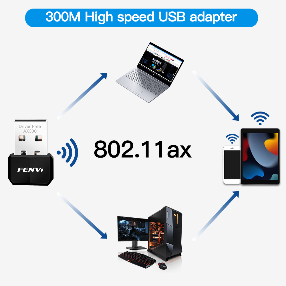 FENVI WIFI6 USBアダプタ AX300 ネットワークカードミニUSBドングル 2.4GHz 802.11AX ワイヤレスドングルレシーバー Win 7/10/11 ドライバ不要 |