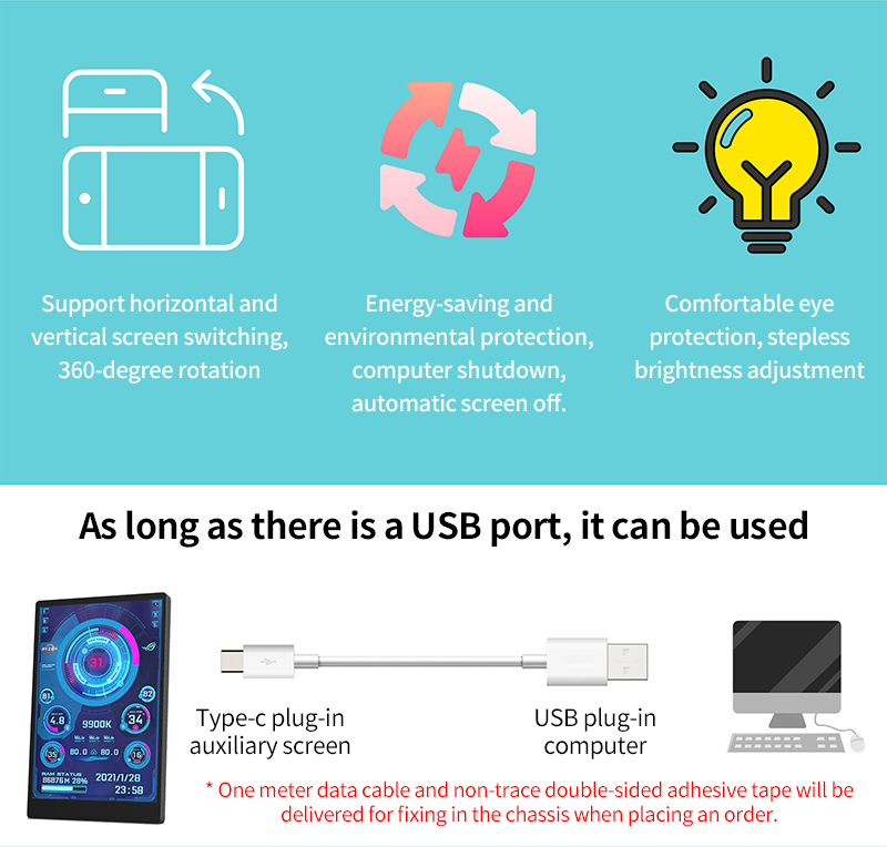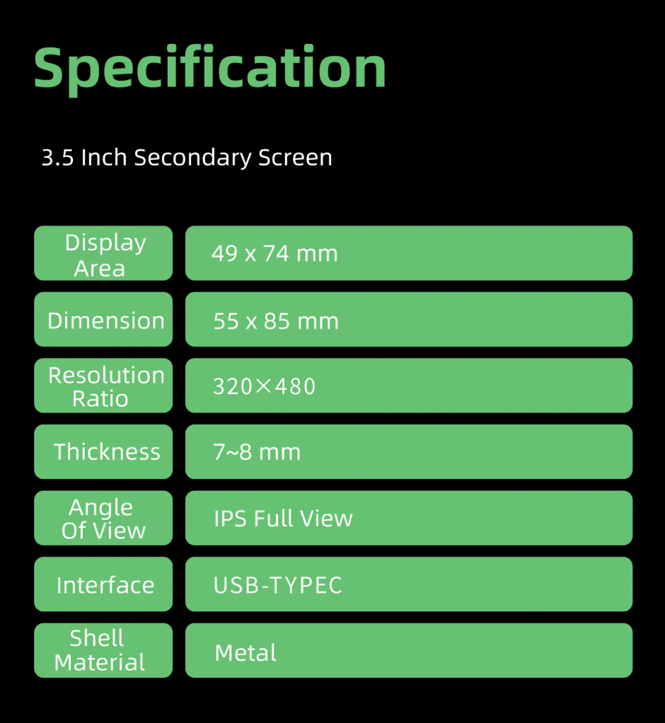 3.5インチ システムサブモニター USB Type-C接続対応 Windows対応 セカンダリディスプレイ USBコネクタ付きモニター |