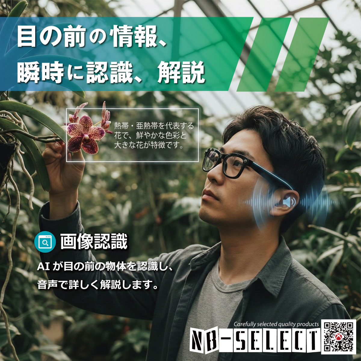 ハンズフリーAIスマートグラス!高解像度録画&高画質写真撮影!クリア録音・ノイズ低減対応!Bluetooth&Wi-Fi接続!スマホ連携・通話・音楽再生OK!リアルタイム翻訳&AI画像認識対応! |